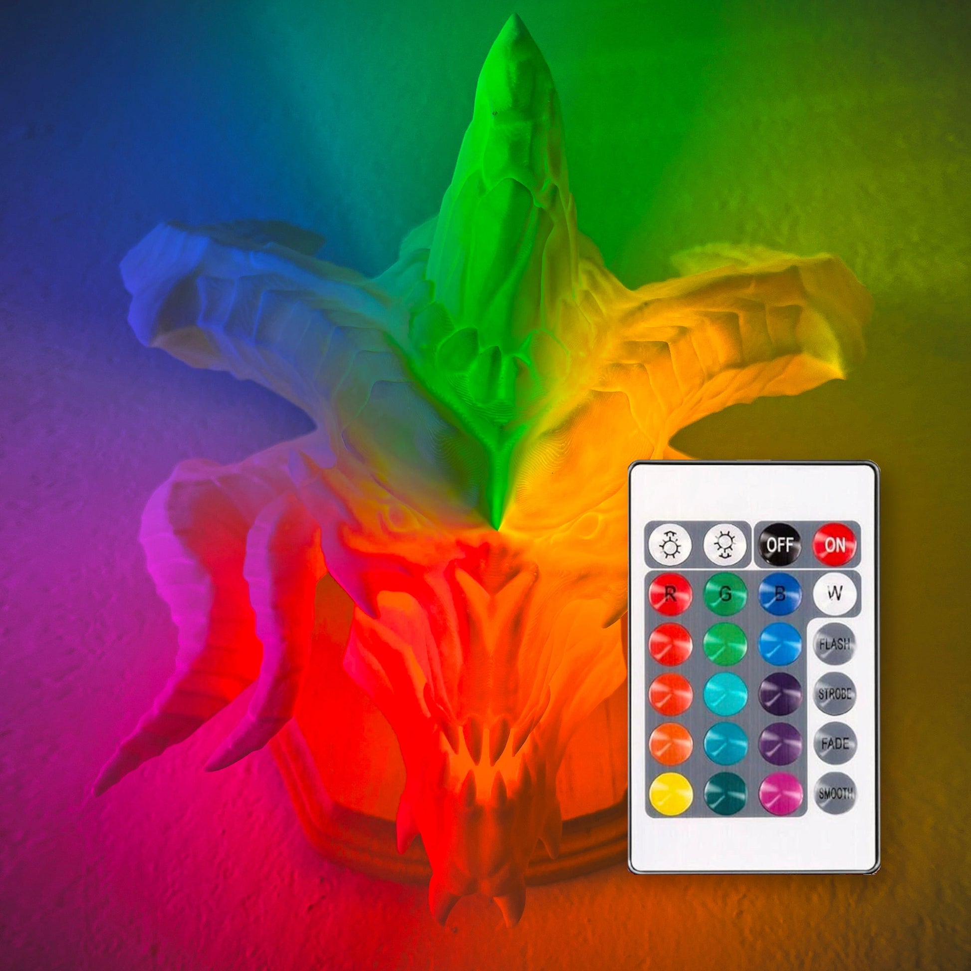 The color changing version includes a remote control with 16 colors and 4 color changing modes. You can choose any of the 16 colors by simply pressing a color button, you can also set the brightness and four color changing modes as well.